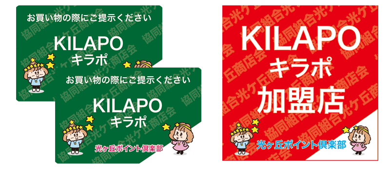 光ヶ丘商店会では、お買い物やご飲食でポイントが貯まる「KILAPOカード」を発行しています。